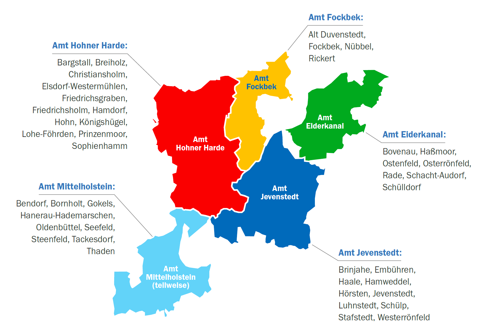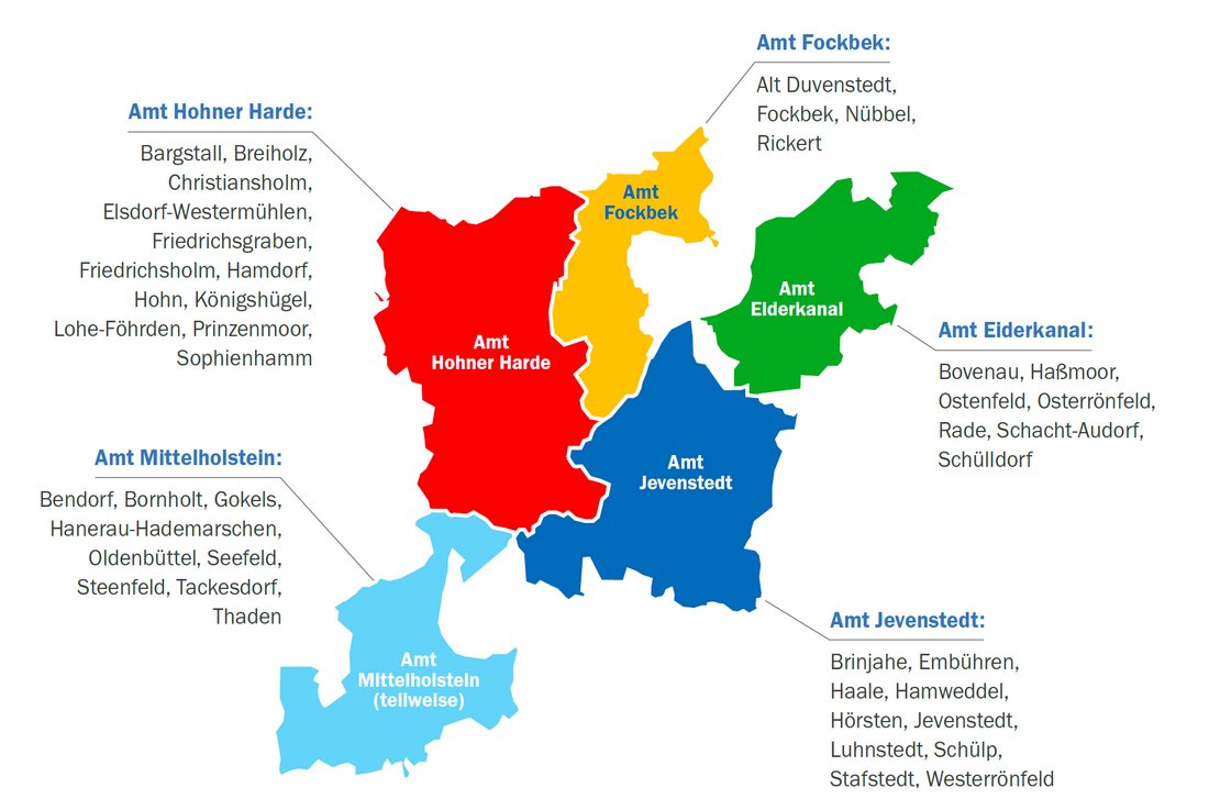 Fünf Ämter haben sich mit insgesamt 42 Gemeinden zusammengeschlossen, um 2010 den Zweckverband für die Breitbandversorgung im mittleren Schleswig-Holstein zu gründen.